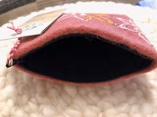 Vackert broderad liten tovad börs i mjuka toner på mild rosa botten, fodrad och med dragkedja!